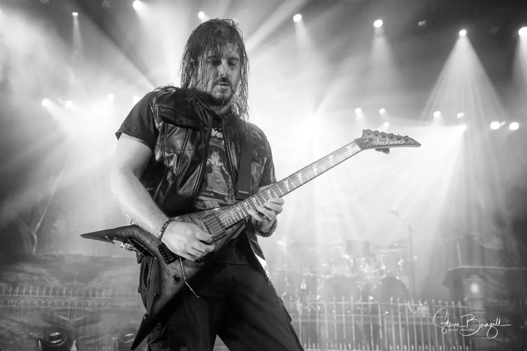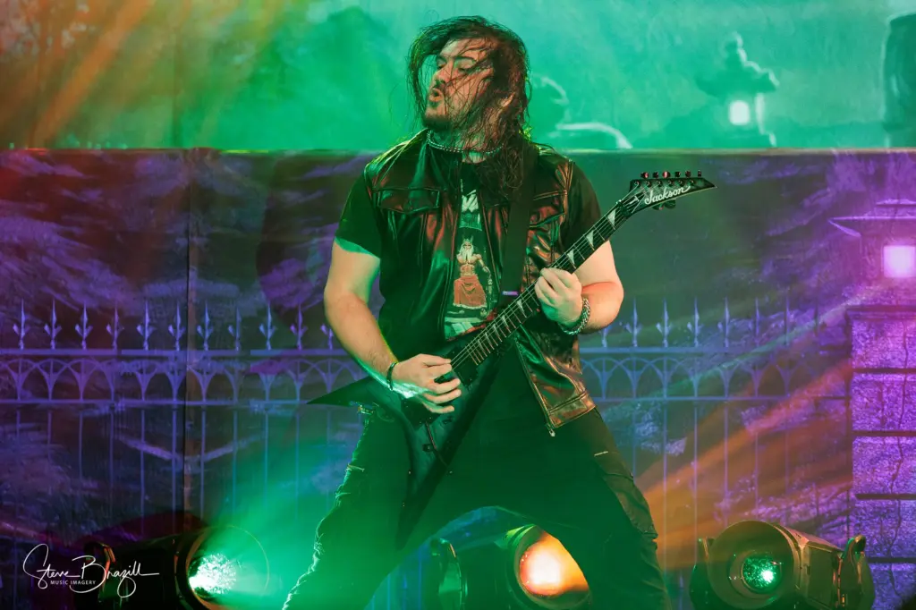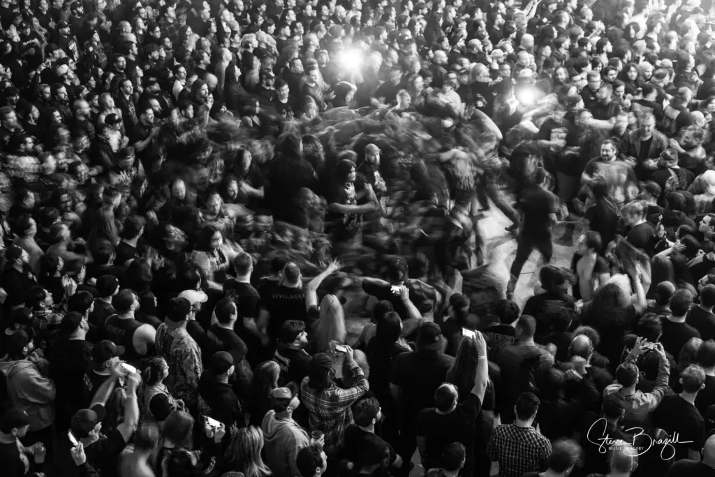 Mid-set, the band balanced nostalgia and newer aggression — the heaviness of “Into the Mouth of Hell We March” and “Throes of Perdition” intertwined with the haunting melody of “Until the World Goes Cold,” giving depth and emotion before they charged back into the pit with “Bury Me With My Screams,” a track from their fresh 2025 release.